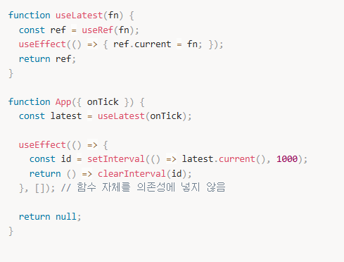 - 콜백 참조를 effect 의존성에서 빼고 싶지만 최신 구현을 쓰고 싶을 때: